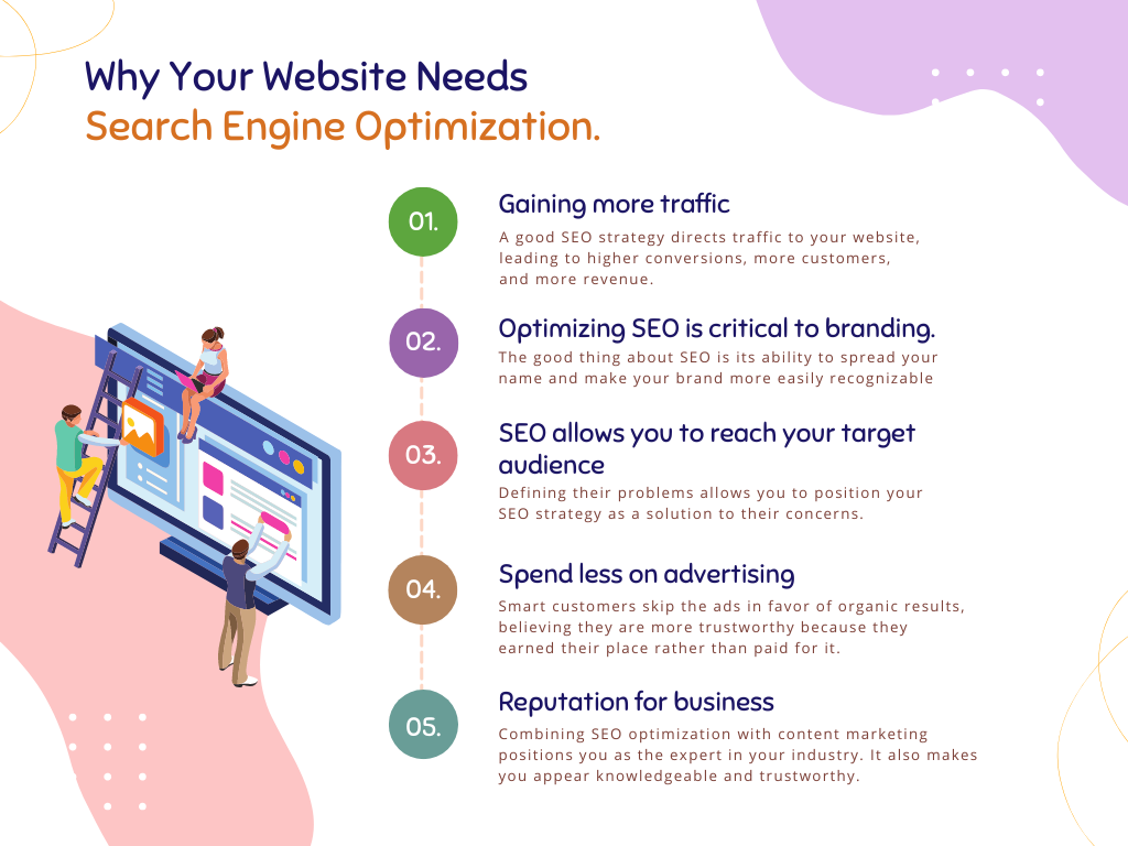 • Lastly, SEO is a budget way to bring more and potential customers to your brand who are searching for businesses organically.